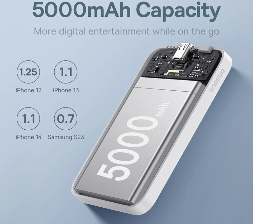 - De powerbank heeft een capaciteit van 5.000 mAh