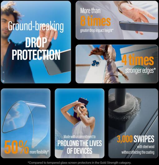 - Glas kan breken bij een harde klap, maar voorkomt schade aan je scherm.