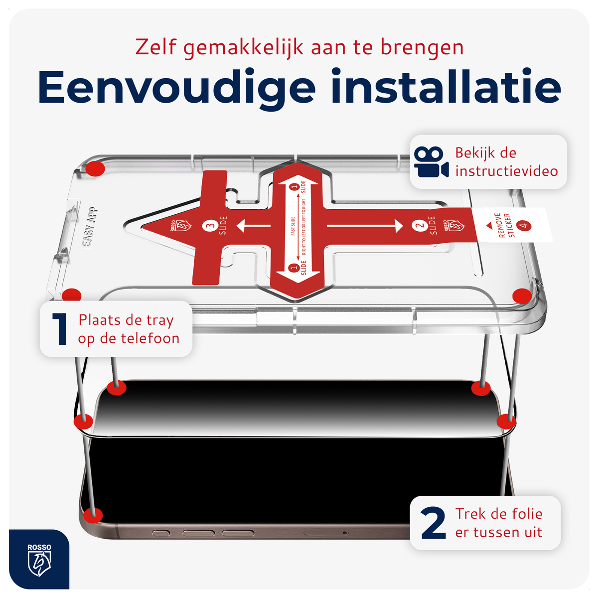 - Handige Rosso installatietray voor perfecte positionering van de Screen Protector