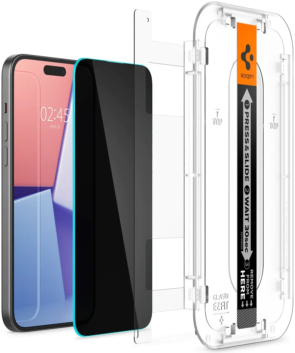 Spigen EZ Fit Glas.tR Apple iPhone 16 / 15 Privacy Glass (2-Pack)