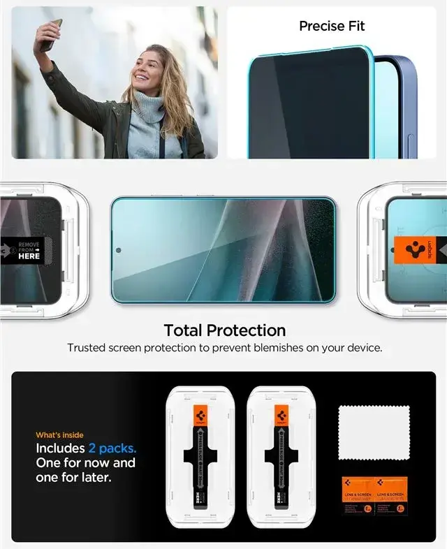 De Spigen EZ Fit Glas.tR beschermt je beeldscherm en privacy. Het 2-way privacy glas zorgt ervoor dat anderen niet ongewenst kunnen meekijken op je beeldscherm, aangezien je deze alleen kunt bekijken als je recht voor het scherm zit. Voor het plaatsen van de protector kun je het meegeleverde frame gebruiken. Hiermee installeer je het glasplaatje binnen enkele seconden eenvoudig en recht op het beeldscherm van je Samsung Galaxy S25 Plus / S24 Plus. De screen protector is gemaakt van 9H gehard glas dat perfect aansluit op je scherm en deze beschermt tegen krassen, vallen en barsten. Door het dunne design behoud je de heldere beeldkwaliteit en touch response.