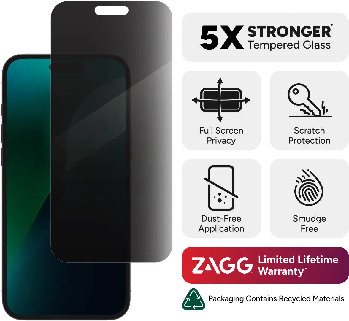 ZAGG Glass Elite Privacy 360° iPhone 16 Plus / 15 Plus Screen Protector