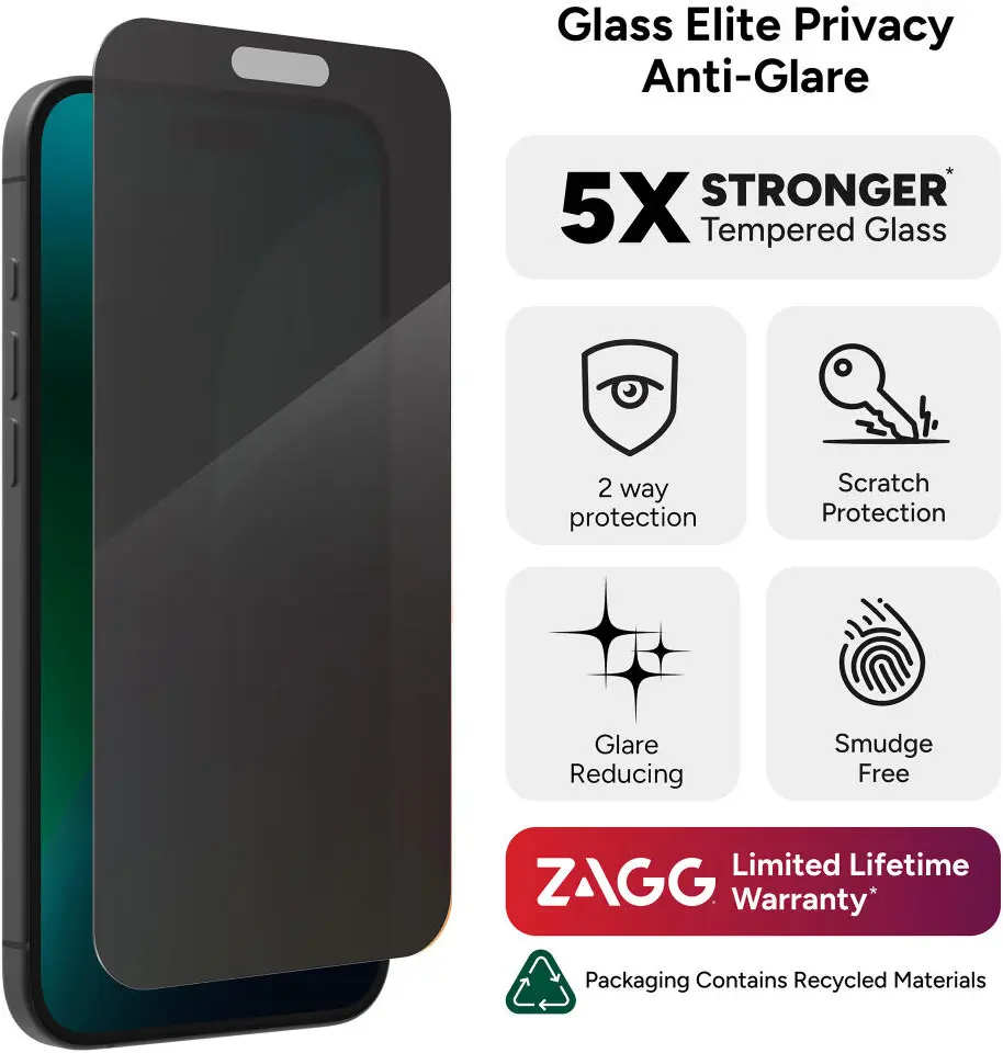 ZAGG InvisibleShield Glass Elite iPhone 16 Plus/15 Plus Anti-Glare Privacy Glass