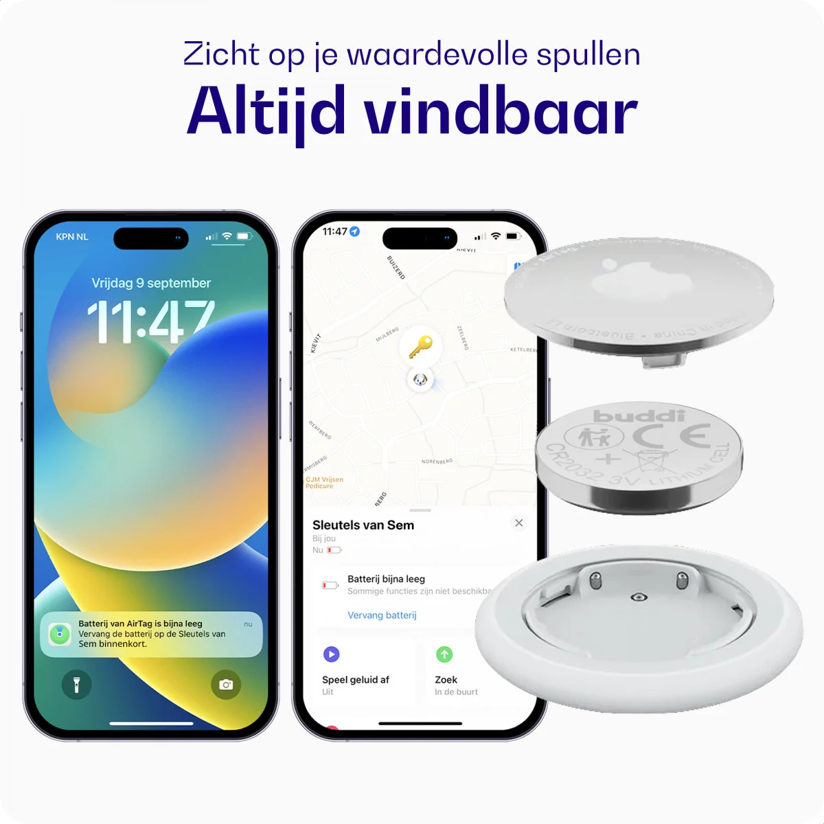 De CR2032 batterij is ontworpen voor langdurig gebruik, waardoor je AirTag continue kan functioneren zonder onderbrekingen. Of het nu gaat om het bijhouden van je sleutels, tas of andere items, je kunt altijd vertrouwen op de consistente prestaties van deze batterij. Wij streven naar excellentie in elk aspect van onze producten. Daarom worden onze CR2032 batterijen geproduceerd volgens de hoogste kwaliteitsnormen, zodat je verzekerd bent van een betrouwbare en veilige stroomtoevoer voor je AirTag. De batterij gaat ongeveer een jaar mee, dan ben je weer genoodzaakt om de batterij te verwisselen. In de 'Find my' App kun je de batterijstatus van de Apple AirTag batterij zien.