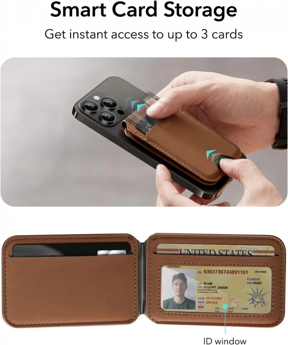 Voordelen van de ESR HaloLock Vegan Leer MagSafe Kaarthouder en Standaard: