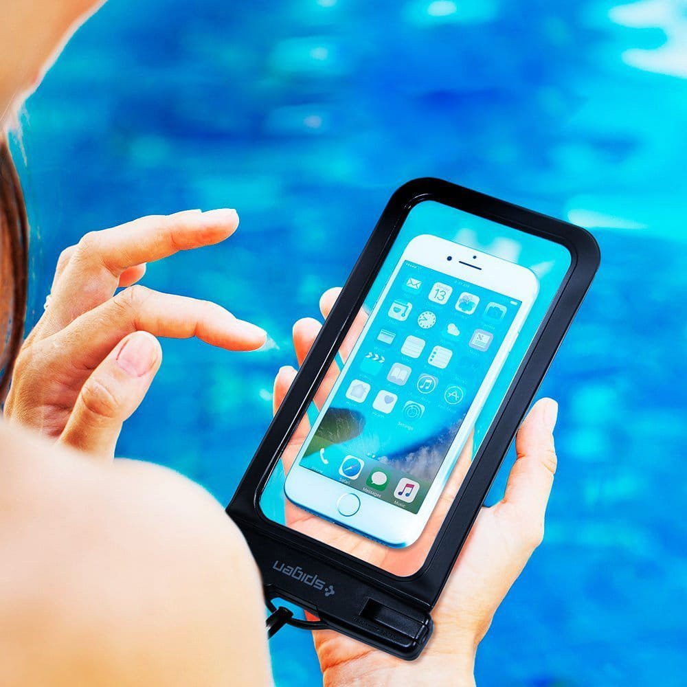 Bescherm je smartphone tegen water met dit Spigen Velo Universeel Waterbestendig Hoesje. Dit Spigen Hoesje is een compact zakje dat waterdicht is. Je kan je smartphone en andere kostbare bezitten dus veilig bewaren als je bijvoorbeeld gaat varen of zwemmen.