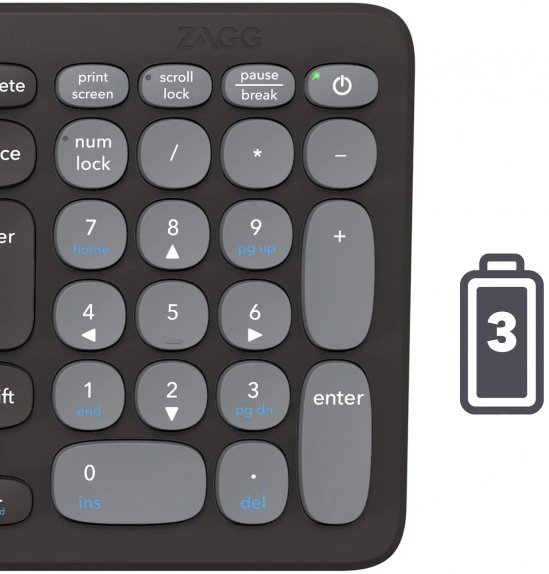 Het ZAGG Pro-toetsenbord is slim ontworpen om typen makkelijker te maken. De toetsen zijn zo geplaatst dat het typen comfortabel is, en de toetsen zijn niet te ver uit elkaar. Ze voelen ook prettig aan als je typt. Je kunt het ZAGG Pro-toetsenbord opladen op een draadloze oplader die Qi ondersteunt, zodat je altijd kunt typen, zelfs als de batterij bijna leeg is. Zo blijft je bureau netjes, zonder rommelige kabels. Je kunt het toetsenbord ook opladen met de meegeleverde kabel. Met dit toetsenbord kun je tot drie apparaten tegelijk bedienen, zoals een telefoon, tablet of computer. De batterij gaat drie maanden mee voordat je hem weer moet opladen.